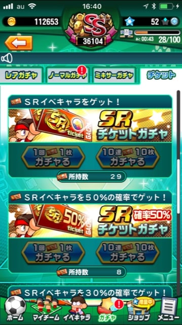この画面に出ているだけで、SRキャラを確定で29体引けます。さらに、運がよければSR確率50%チケットガチャによって、最大8体のSRイベキャラをゲット出来るのです。